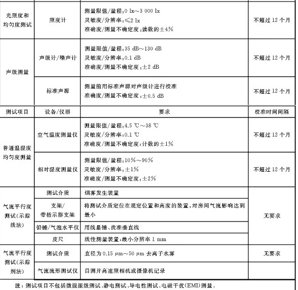 規(guī)定了制藥、醫(yī)療、電子、科學實驗室等不同應用領域的檢測要求,如下: